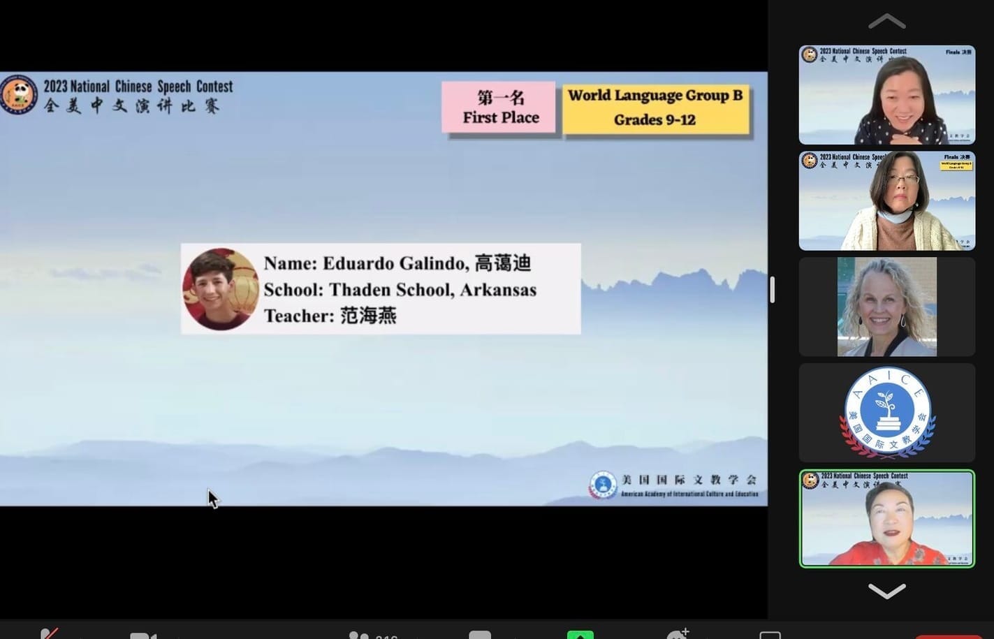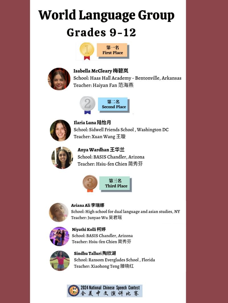 Student Outcomes 1st Place — U.S. National Chinese Speech Contest (2023 & 2024; 9-12th grade, non-heritage track)